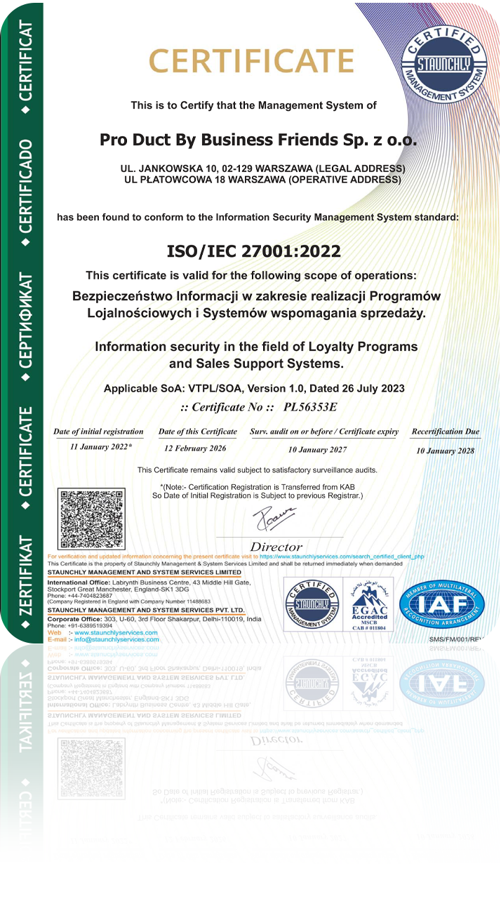 Autorska modularna IT platforma za upravljanje programima lojalnosti i odnosa s klijentima, razvijena u saradnji s Politehnikom u Varšavi. Platforma je intuitivan alat, jednostavan za upravljanje, s mogućnošću nadogradnje (također i tokom trajanja programa).